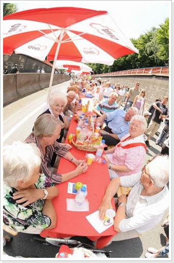 Das Unternehmen IKEA zögerte nicht lange und stellte uns den Parkplatz kostenfrei zur Verfügung. Damit ausnahmslos alle ihren Weg zu den Tischen finden konnten, wurde ein regelmäßiger Shuttledienst für Senioren und Menschen mit Behinderung vom Ikea-Parkplatz zur Auffahrt Oespel/Kley organisiert. Mobilitätshelfer halfen den gehbehinderten Personen auf die A40 und sorgten für einen reibungslosen Transfer zum Parkplatz.