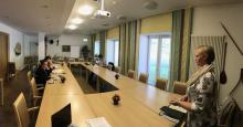Es riecht nach Kaffee und Plätzchen. Die Tische im hell eingerichteten Speisesaal sind liebevoll gedeckt. „Die Einrichtung ist in erster Linie für Senioren und behinderte Menschen gedacht. Sie können bei uns Urlaub machen.“ Während Petra Herbst, die Leiterin des Hauses, bereits von ihrer Arbeit erzählt, genießen die Studenten die Aussicht auf den Möhnesee. Es fühlt sich so an, als könnte man die Füße direkt in das Wasser halten, so nah ist das Gebäude am See gebaut. Klick – es hört sich an wie das Öffnen einer Haustür. Keine Sekunde später platzt Petras Mann, Franz-Josef Herbst, herein.
